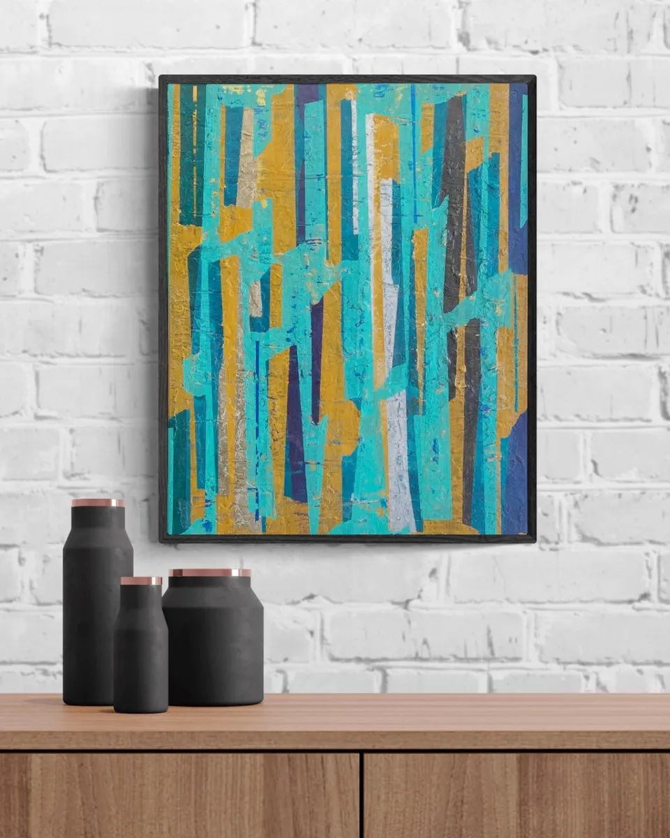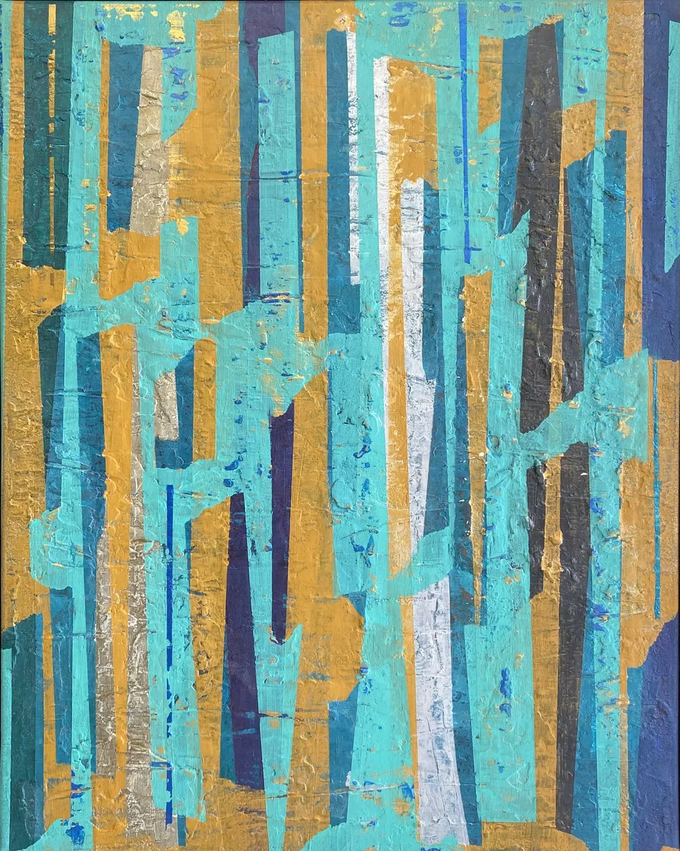 Diptych, 2 of 2. Layered mixed media and acrylics on canvas